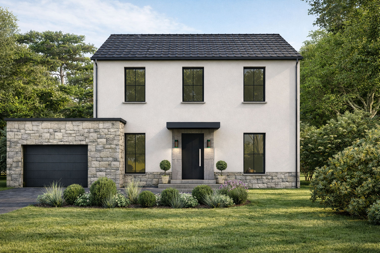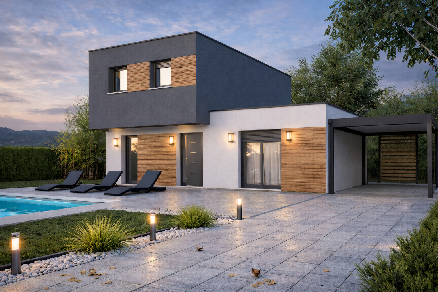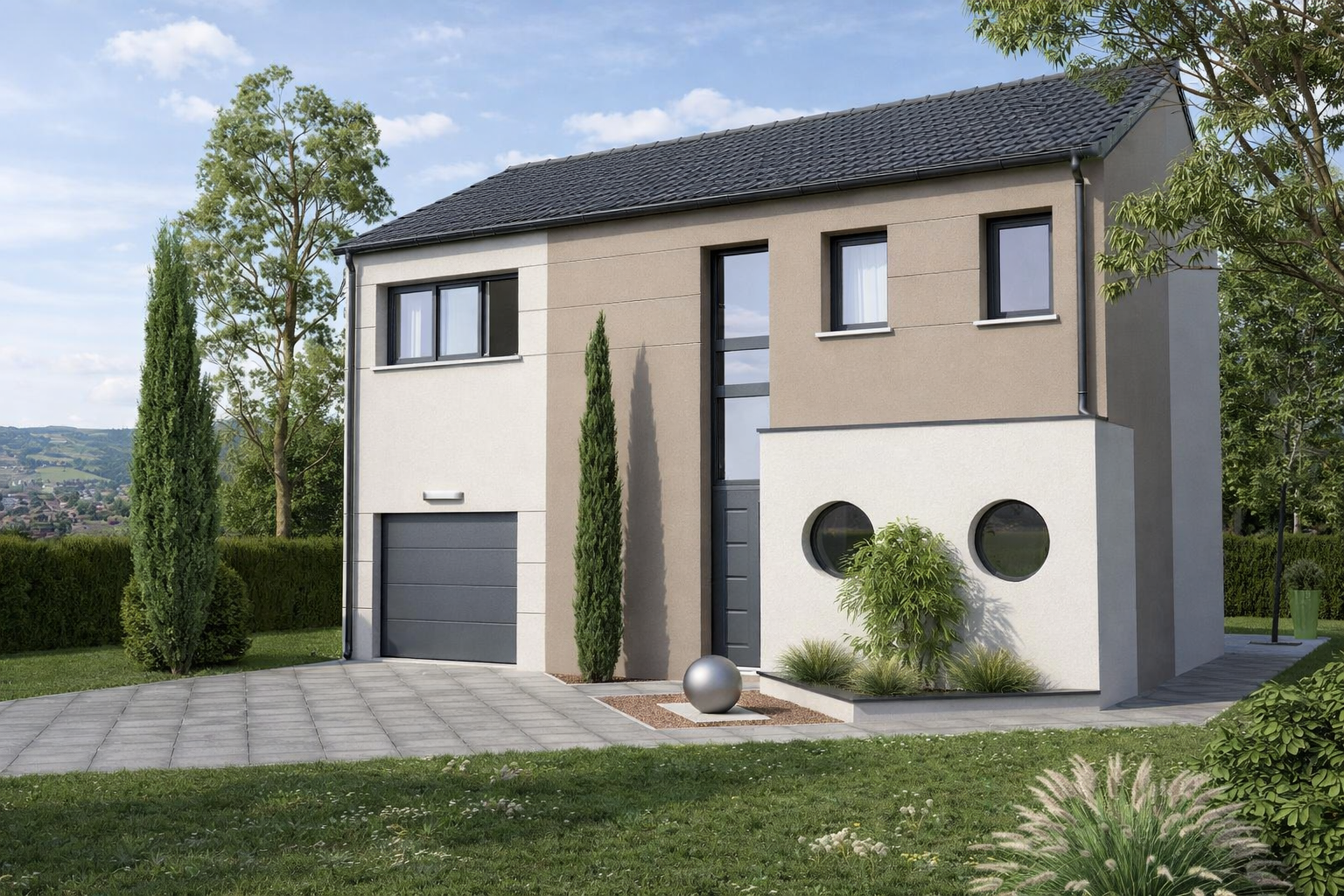 Largement inspirée d’un de nos modèles phares, Louise présente un double garage très pratique tout en conservant un style moderne et épuré.