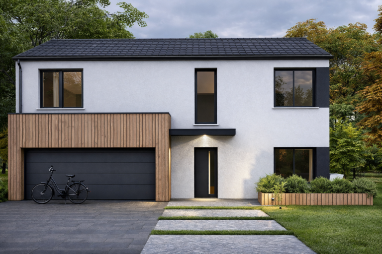 Largement inspirée d’un de nos modèles phares, Louise présente un double garage très pratique tout en conservant un style moderne et épuré.